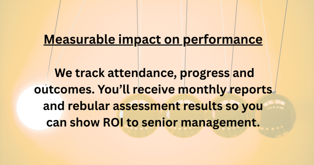 We don’t just teach skills and Business English; we enable your people to apply them confidently and immediately in their day-to-day roles, creating visible impact from the very first sessions.